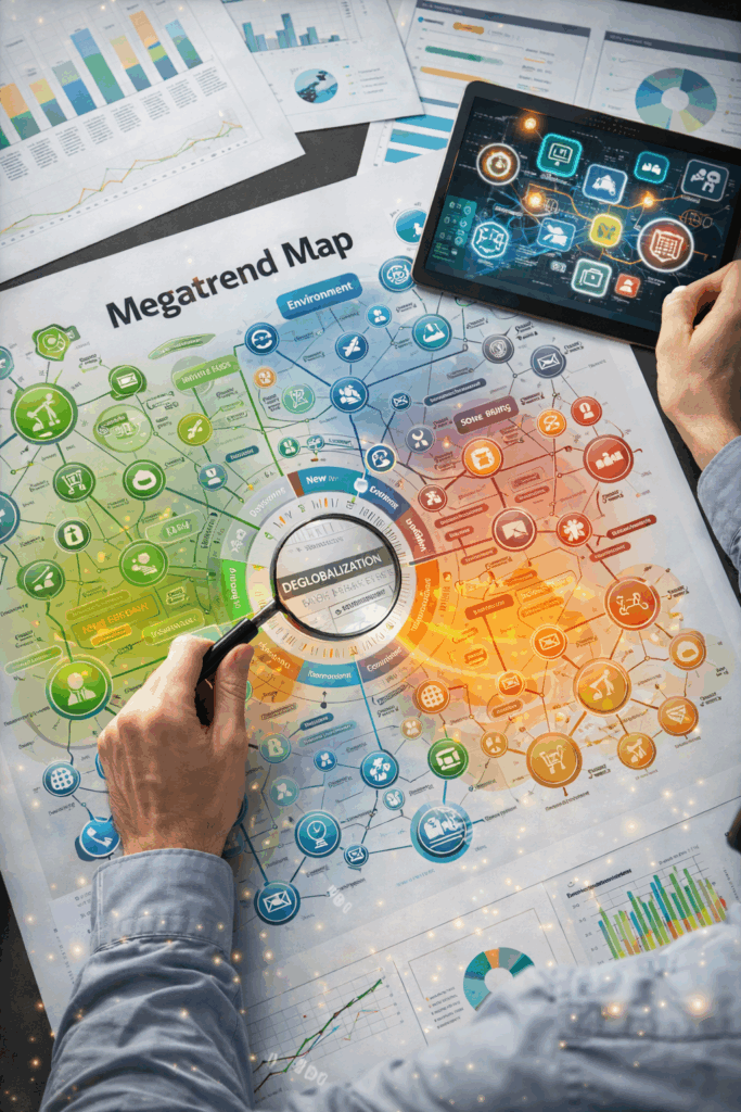 Q4. Für welche Bereiche lässt sich die Megatrend Map praktisch nutzen? Die Megatrend Map findet Anwendung in der strategischen Unternehmensplanung, im Innovationsmanagement, bei der Produktentwicklung sowie im Risikomanagement. Auch für politische und gesellschaftliche Planung ist sie wertvoll. Sie hilft dabei, frühzeitig Veränderungen zu erkennen, Chancen zu identifizieren und fundierte Zukunftsstrategien zu entwickeln.